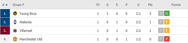 Young Boys vs Manchester United: Cristiano Ronaldo hizo un debut excelente marcando su primer gol en Champions con los Red Devils, además fue el primer gol del torneo. Lastimosamente, el gol fue opacado por la expulsión de Wan – Bissaka a los 35’. Esto dio pie al Young Boys de esforzarse más y remontar el partido con un gol a los 95’. El equipo local sorprende siendo primero de grupo y ahora el United debe recuperarse. 2 – 1 para el club suizo.