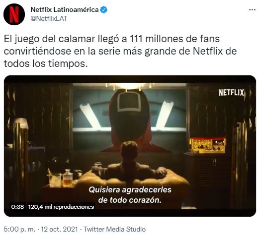 Esta información fue confirmada por el servicio de streaming a través de un tweet, en donde cita: ‘El juego del Calamar llegó a 111 millones de fans convirtiéndose en la serie más grande de Netflix de todos los tiempos’. Asimismo, acompañó este mensaje junto con un video, en donde se utilizó escenas de la serie junto con un voz en off que revelaba la asombrosa cifra de usuarios que alcanzó la serie surcoreana.